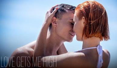 【原档首发】可爱的红发女郎多莉·戴森和查理·迪恩在海滩上玩得很开心