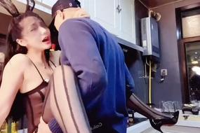 爱丝袜的Vivian姐_黑丝情趣内衣厨房内的激情做爱的。